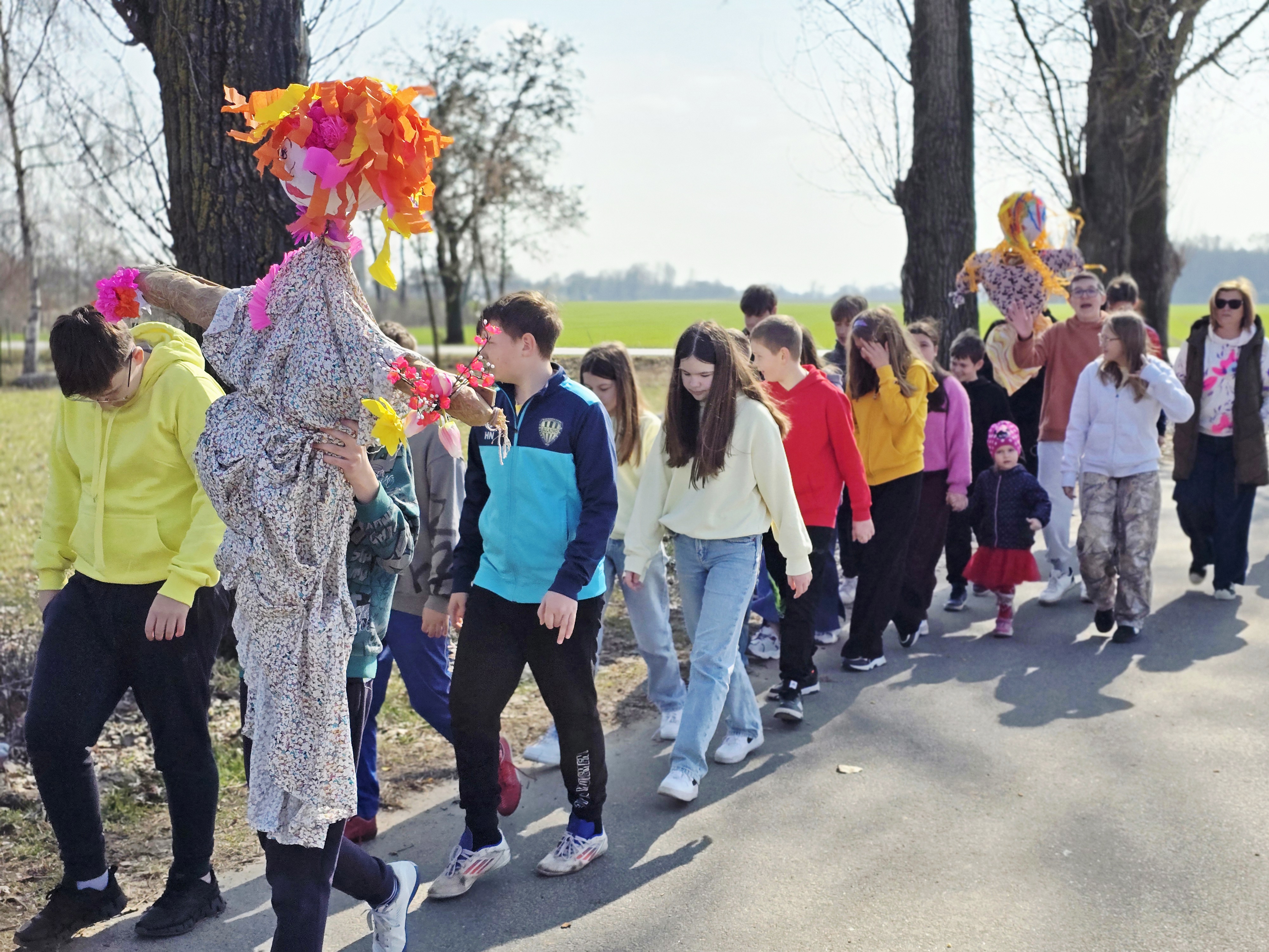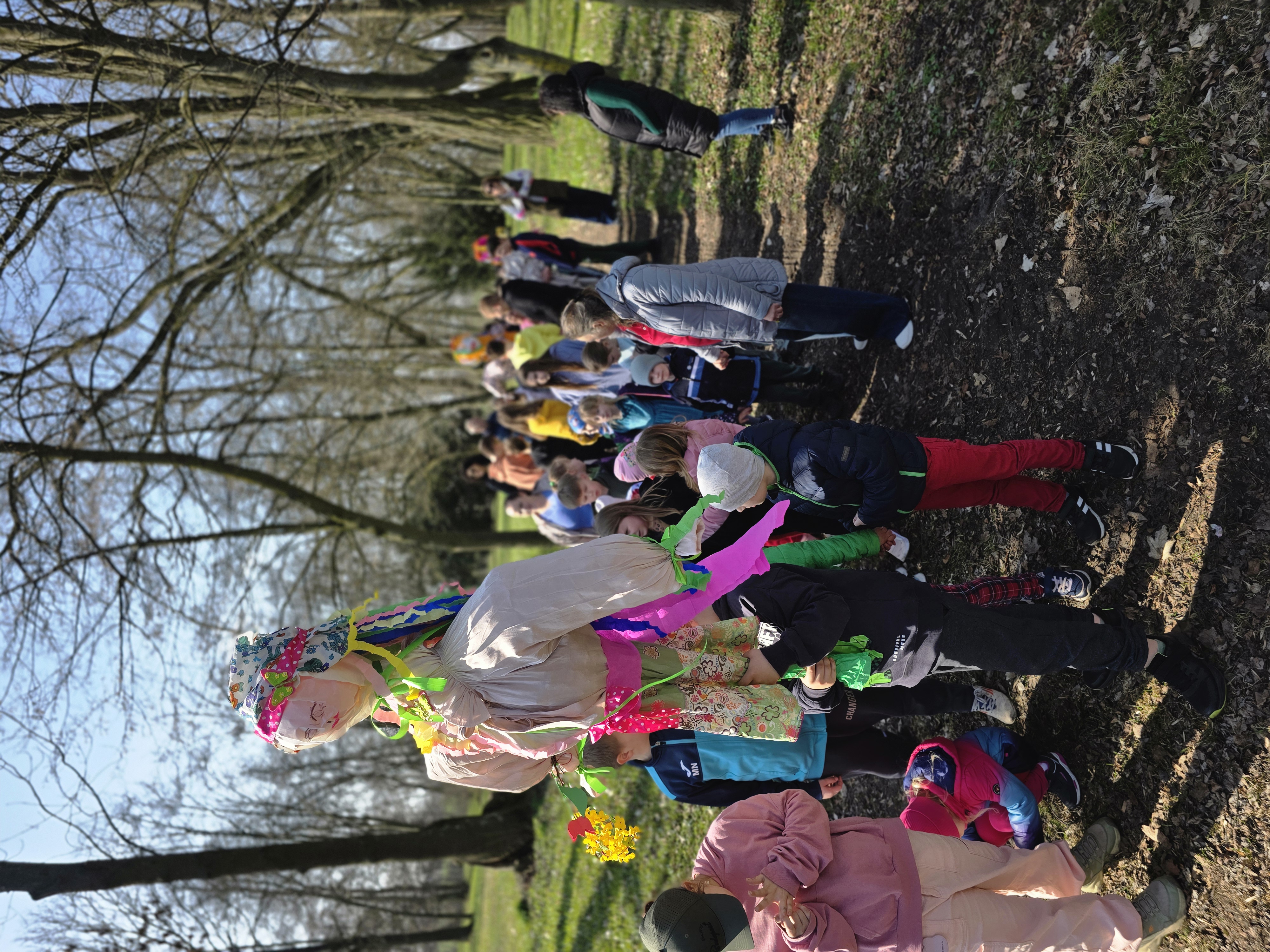 Następnie ruszyliśmy barwnym korowodem do parku, gdzie Marzanny dumnie prowadziły nas ku wiośnie.