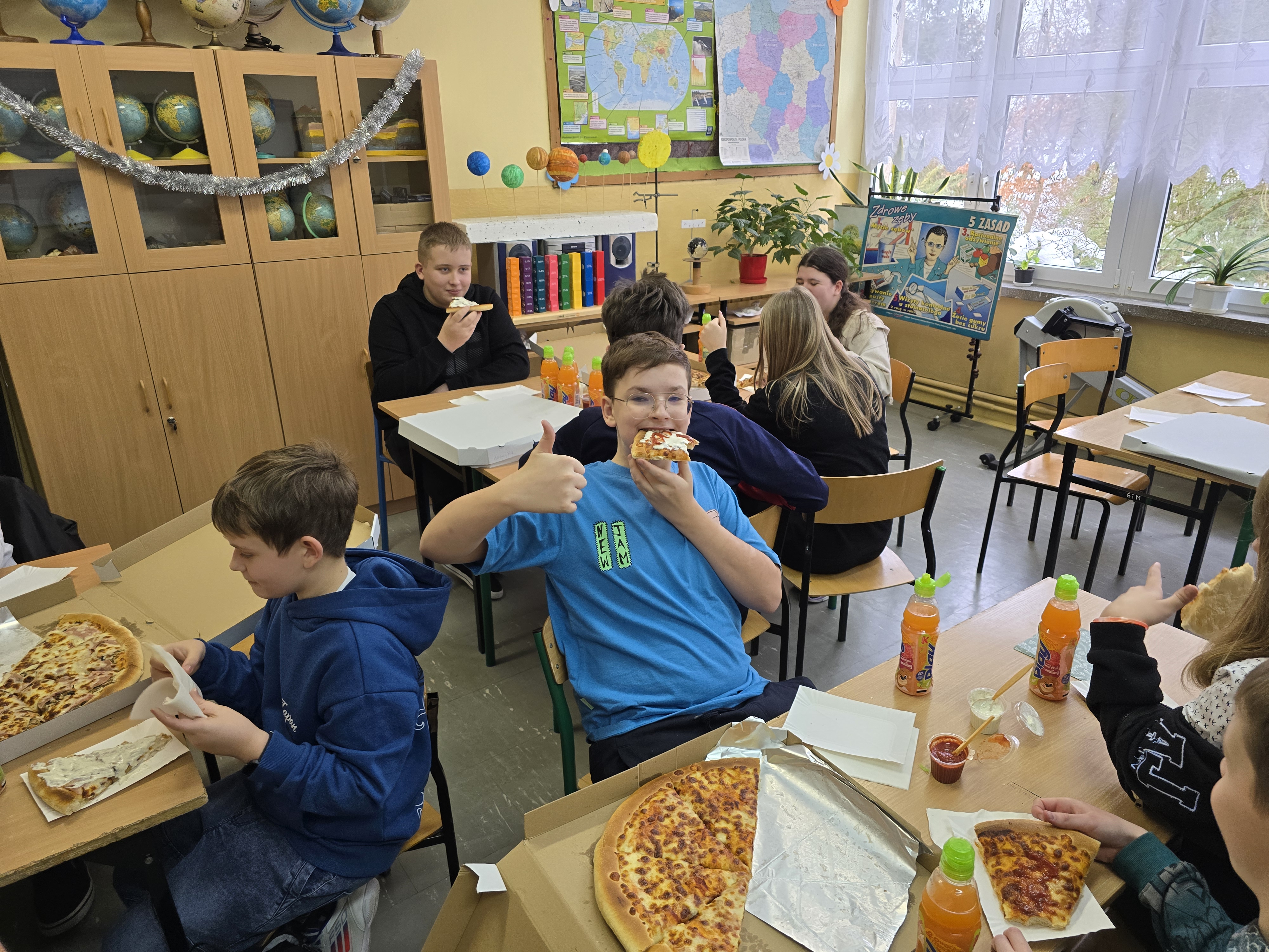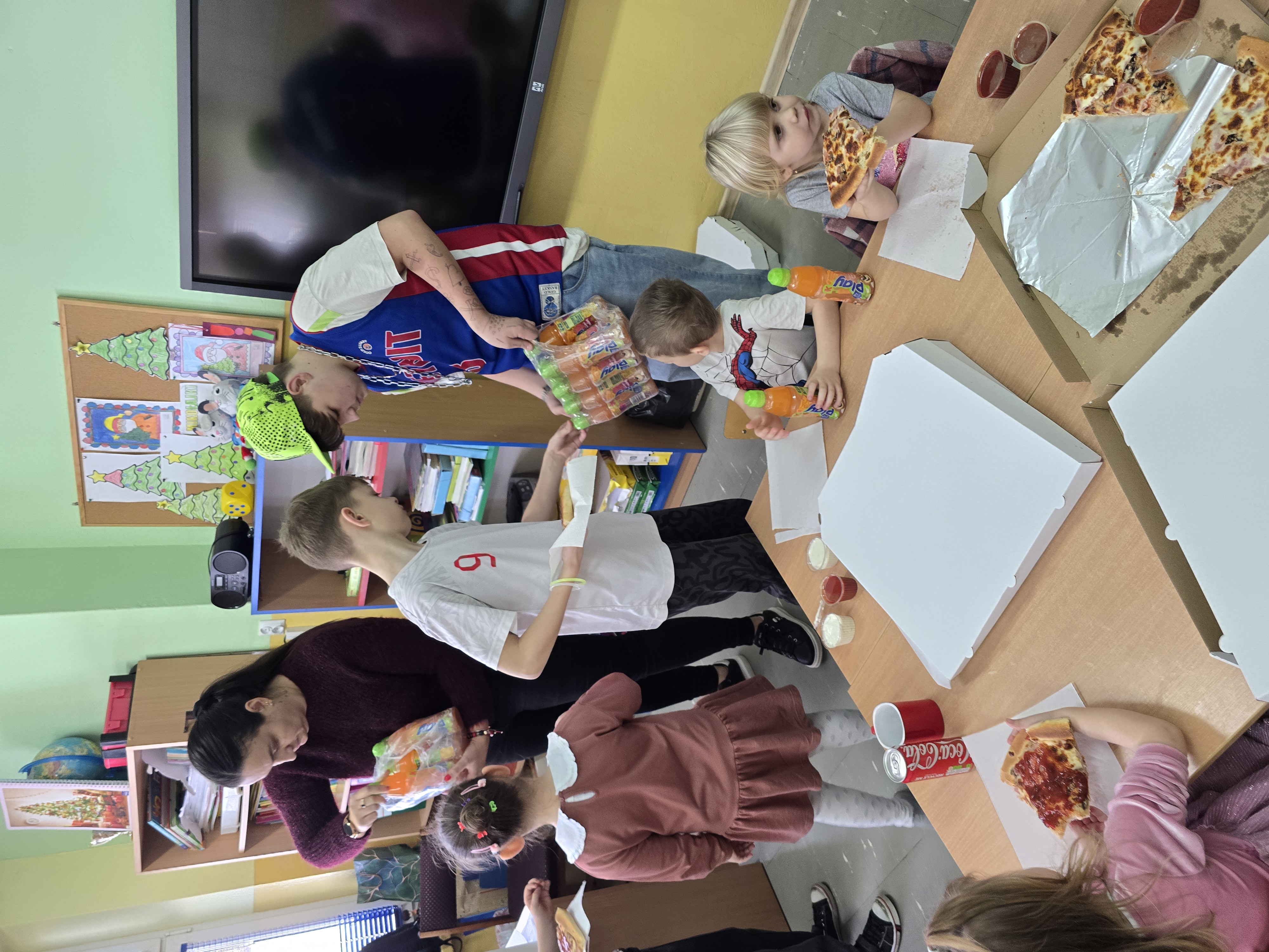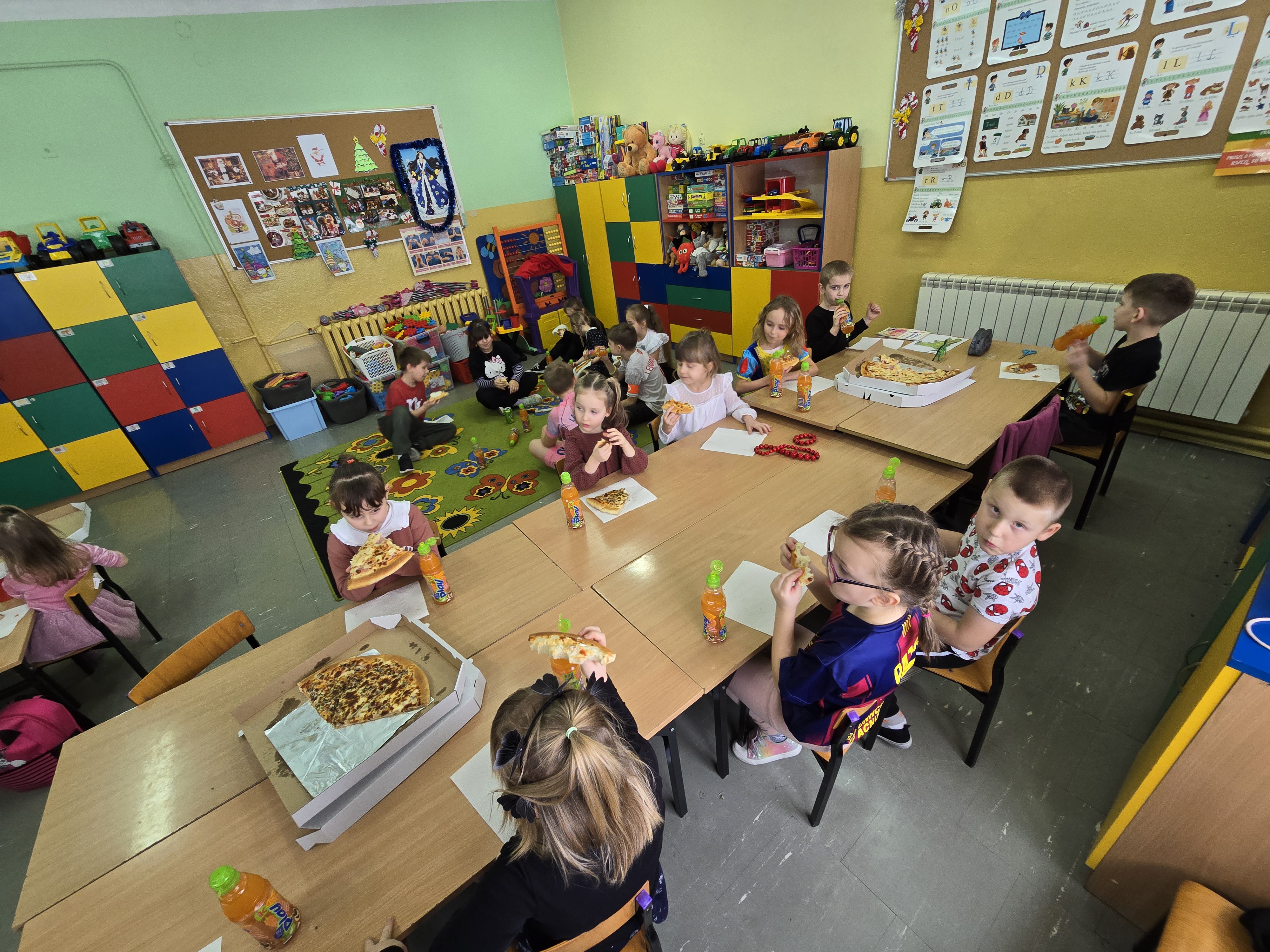 Nie zabrakło wspólnej zabawy, tańców i kultowych „kaczuch” , które porwały wszystkich do wspólnego ruchu. O dobry nastrój i energię zadbał również poczęstunek: pyszna pizza , domowe ciasto oraz napoje.