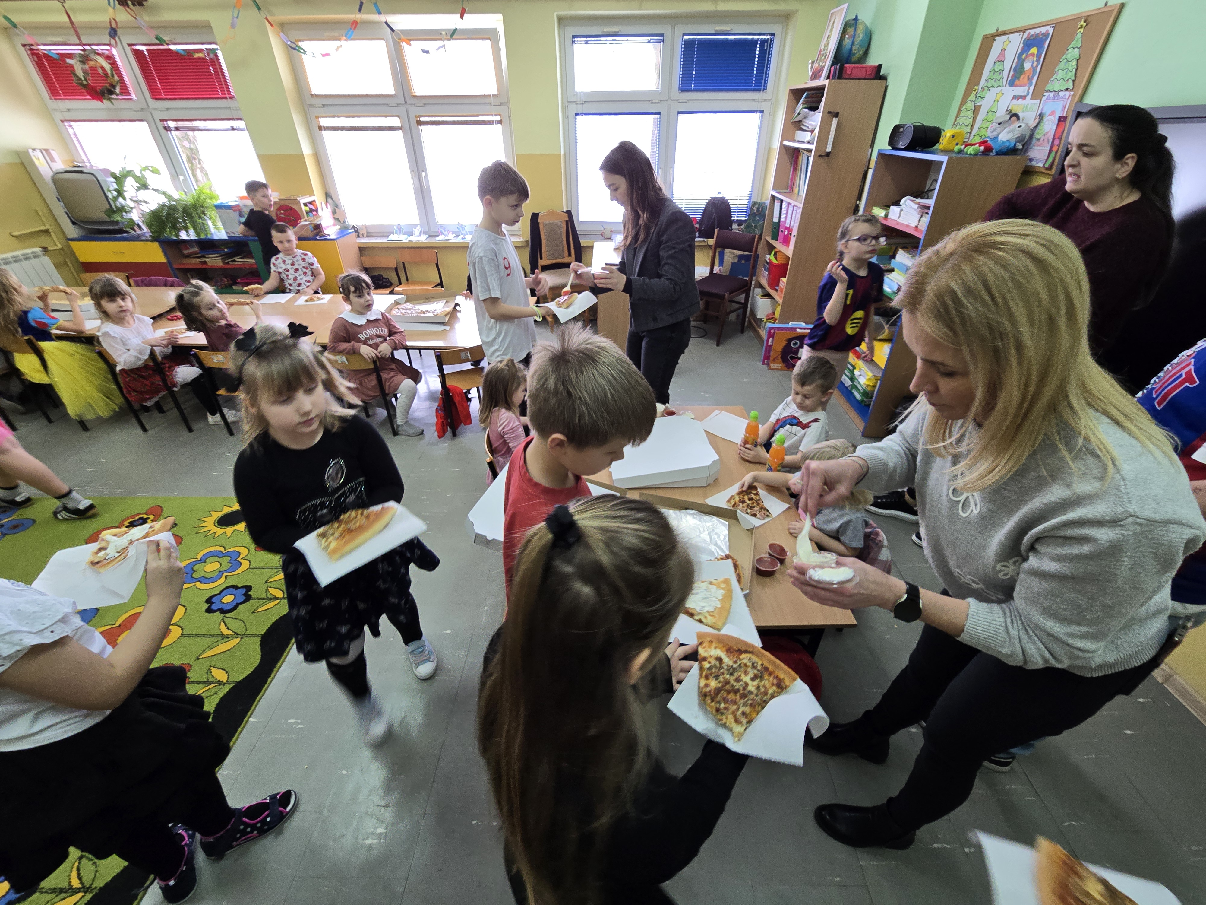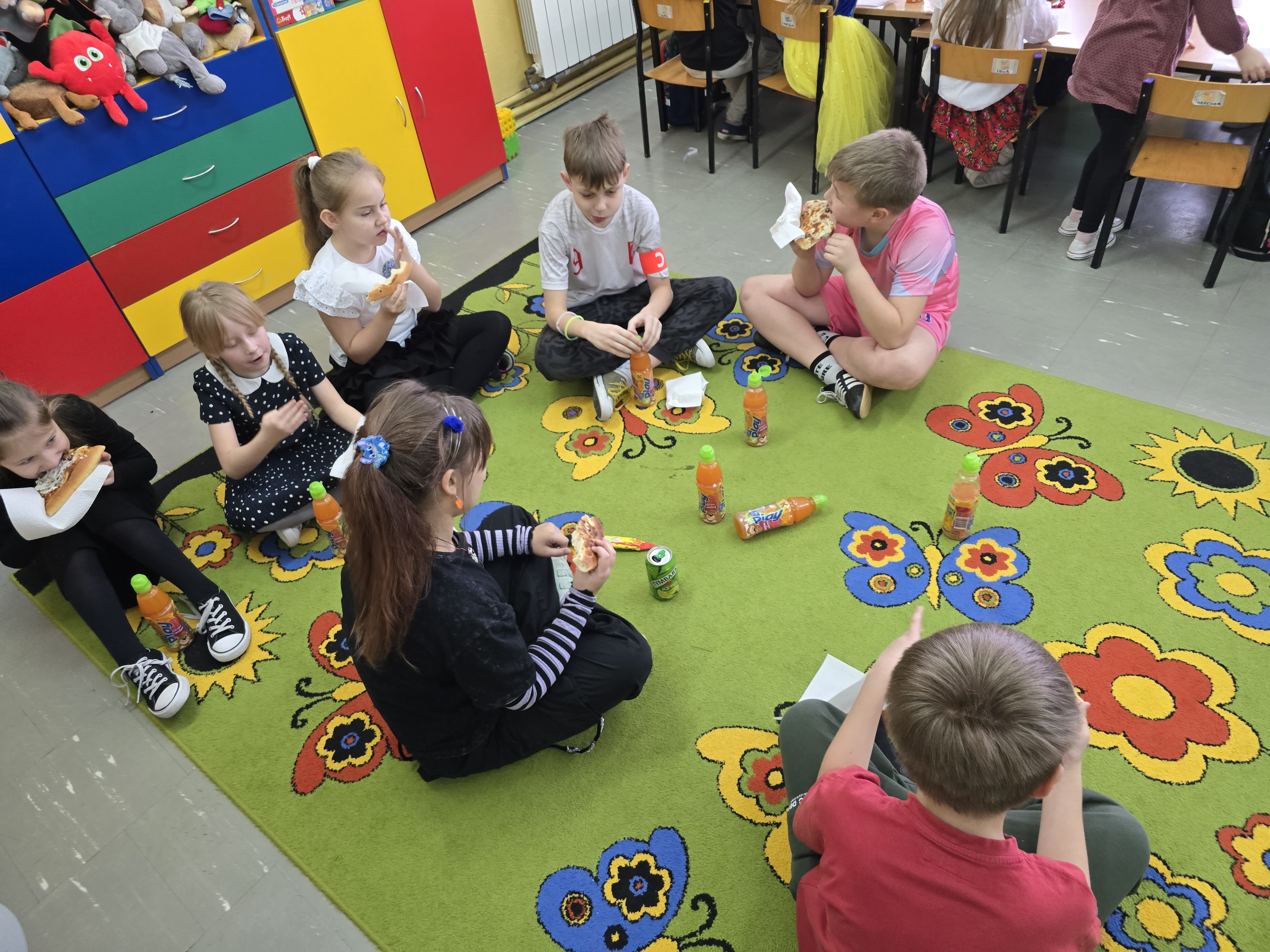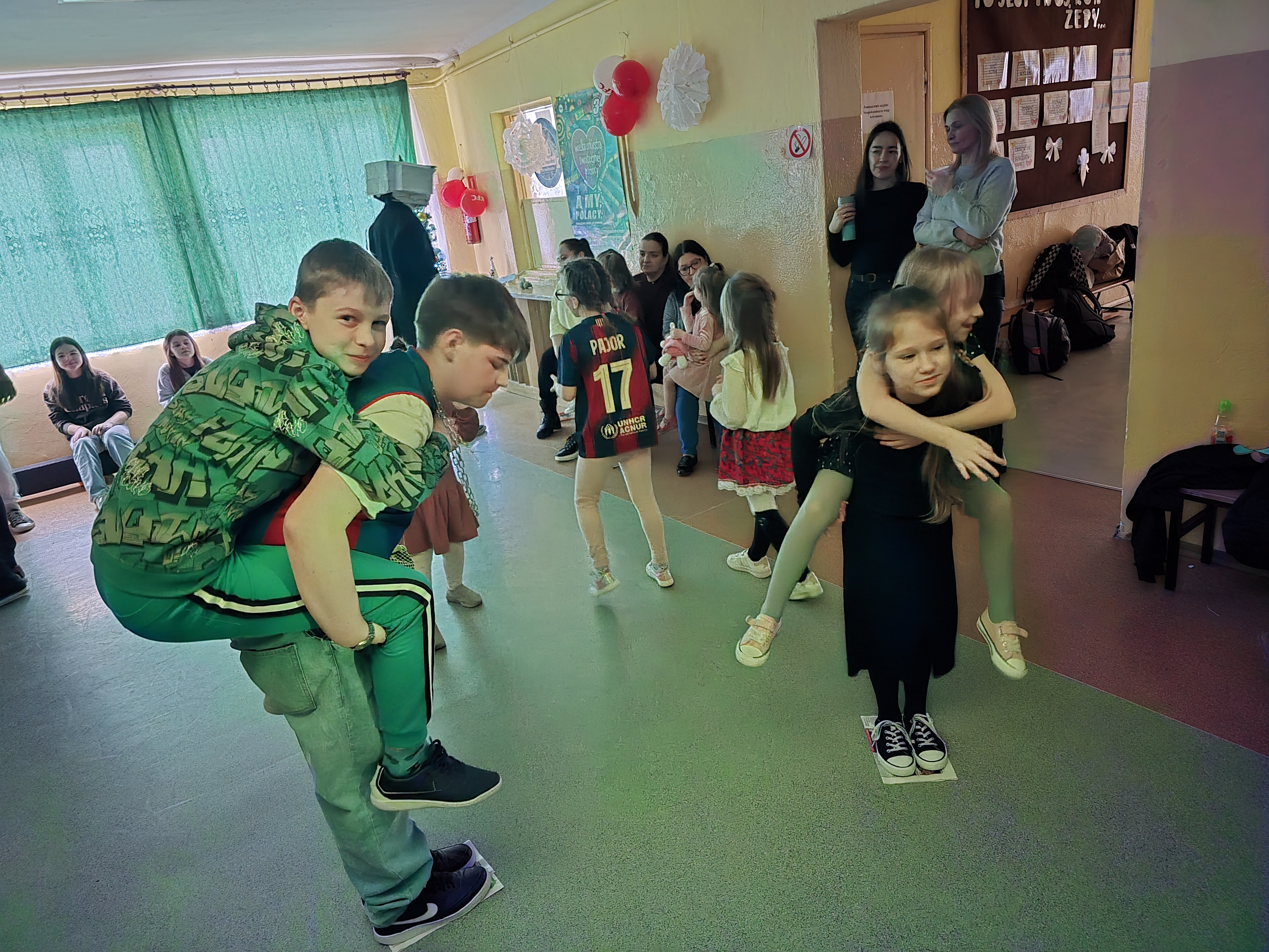 Nie zabrakło wspólnej zabawy, tańców i kultowych „kaczuch” , które porwały wszystkich do wspólnego ruchu. O dobry nastrój i energię zadbał również poczęstunek: pyszna pizza , domowe ciasto oraz napoje.